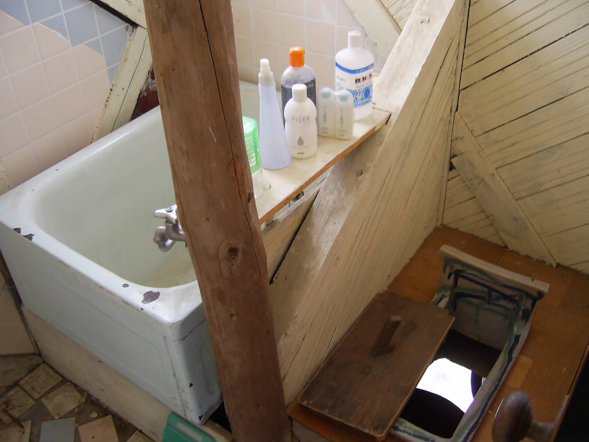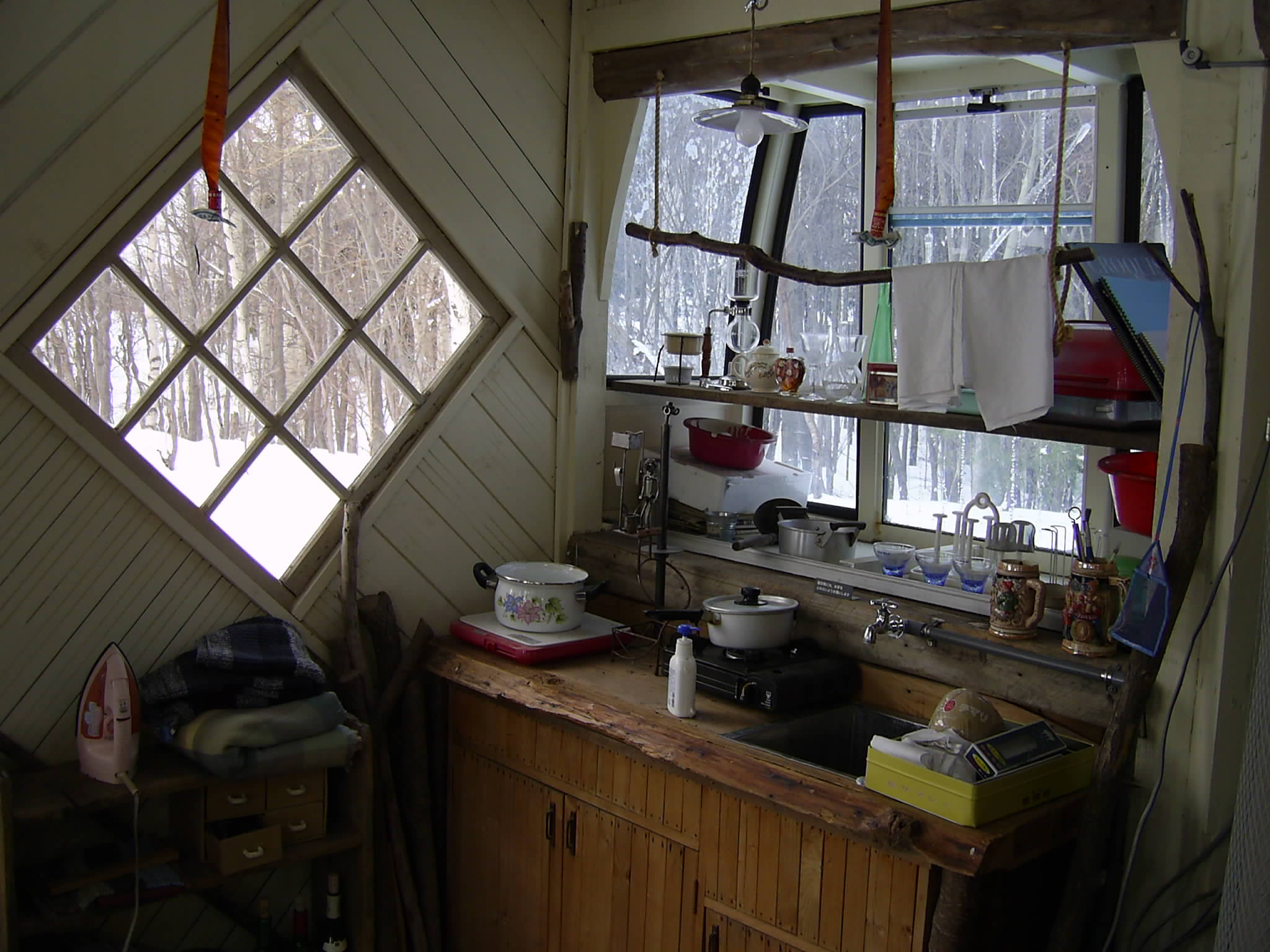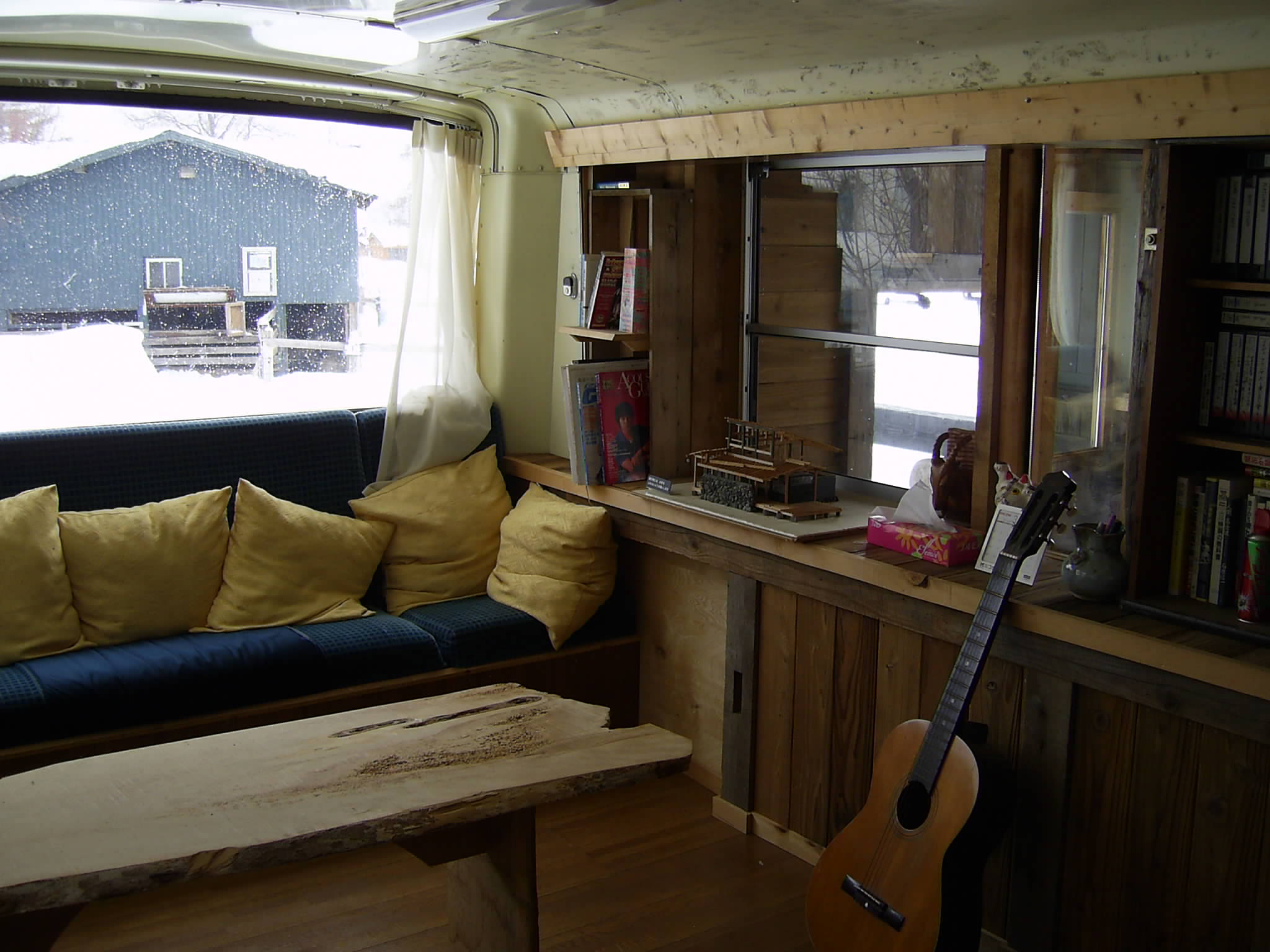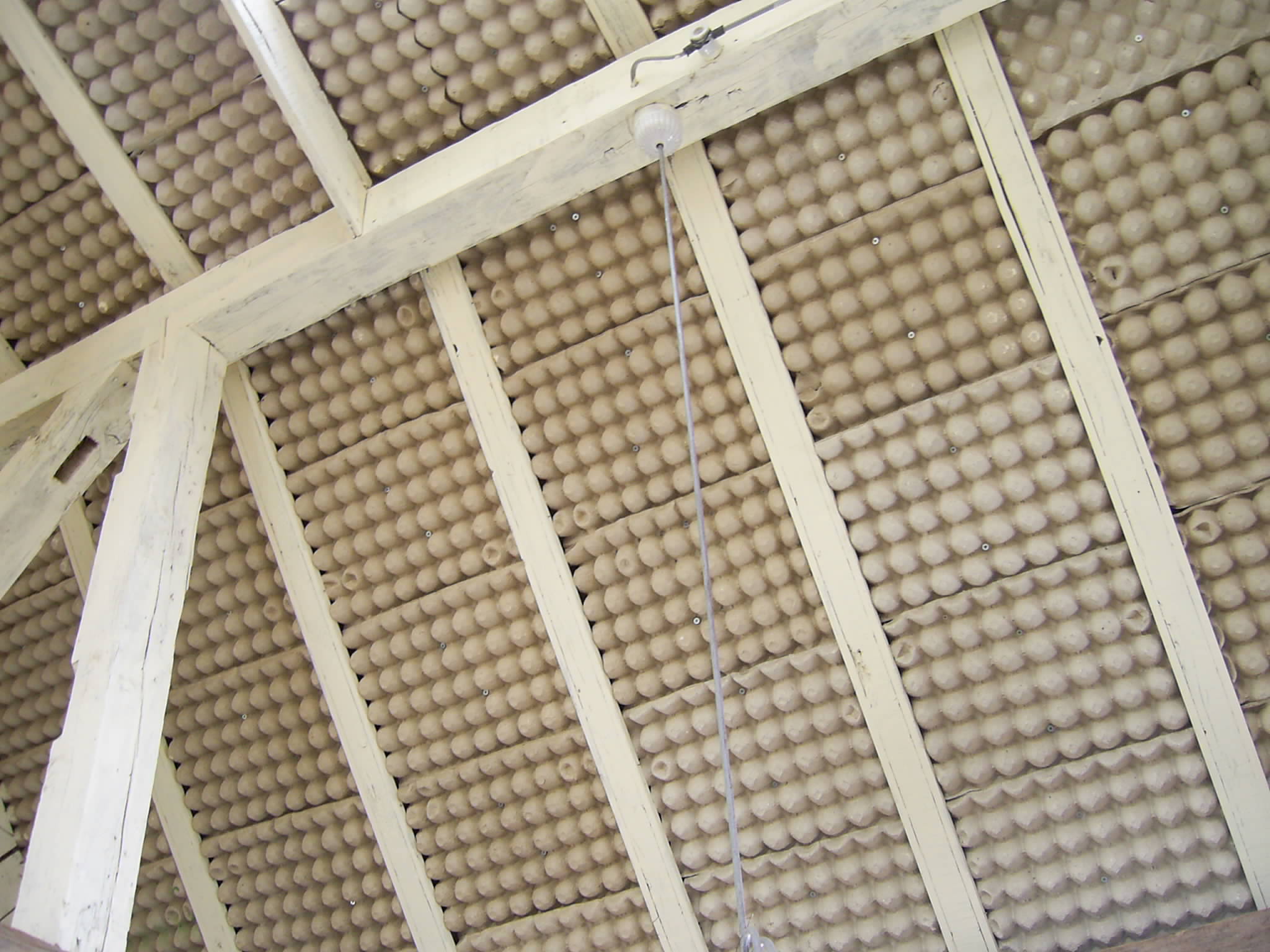 天井には卵パックが敷き詰めてある。断熱材になるそうだが外より寒い!!