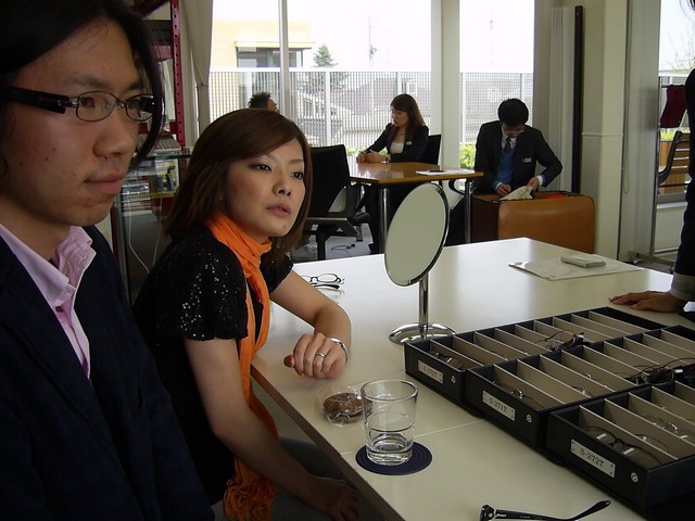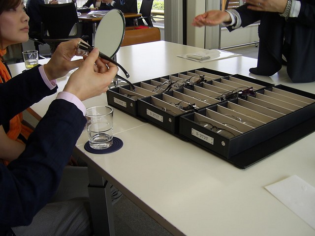 本社前にて、昨年のIOFTではミーさんがやり始めたウイッシュが真似されたので、今回はフレミングの法則で。 落ちがつくのだが、左手の法則というのを忘れていた。 オプトデュオの山岸さんより冷静な突込みが入って気が付いたが、すでにあちこちでやって貰ったので手遅れでございました。
