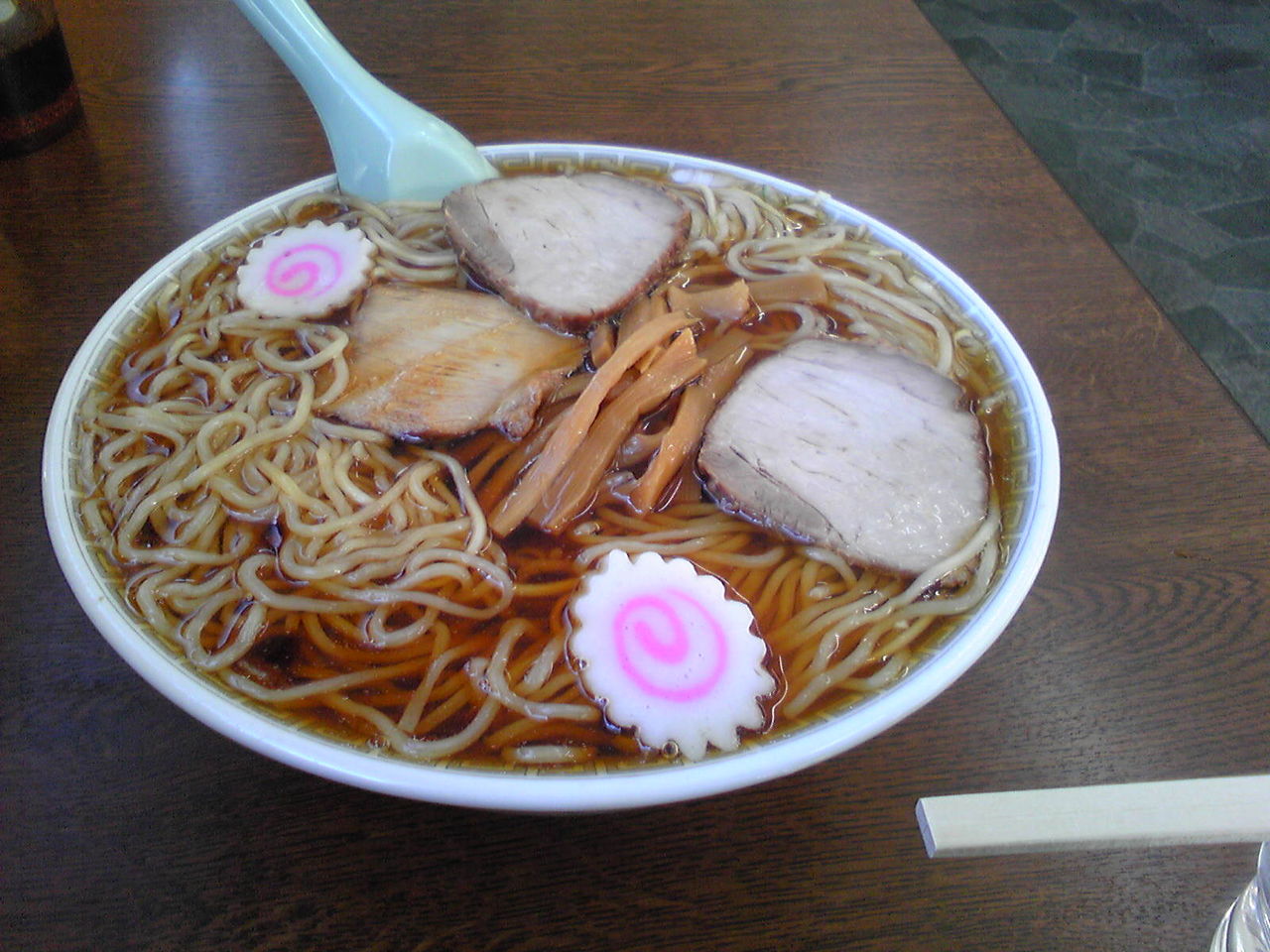私はもちろん大盛りで。 食べても食べても減らない麺。 手打ち麺なので時間がたつと汁を吸ってさらに増えてしまうのです。 スピードが勝負。 でもこの麺が適度なコシでスープに絡んで実に美味しい、そしてスープはほんとシンプルな醤油味なのですが、若干甘めの味付けが癖になります。 まさに食べ飽きのしない味! 私はラーメンにのっているチャーシューはそんなに好きではないのですが、仙台屋食堂のチャーシューは美味い!