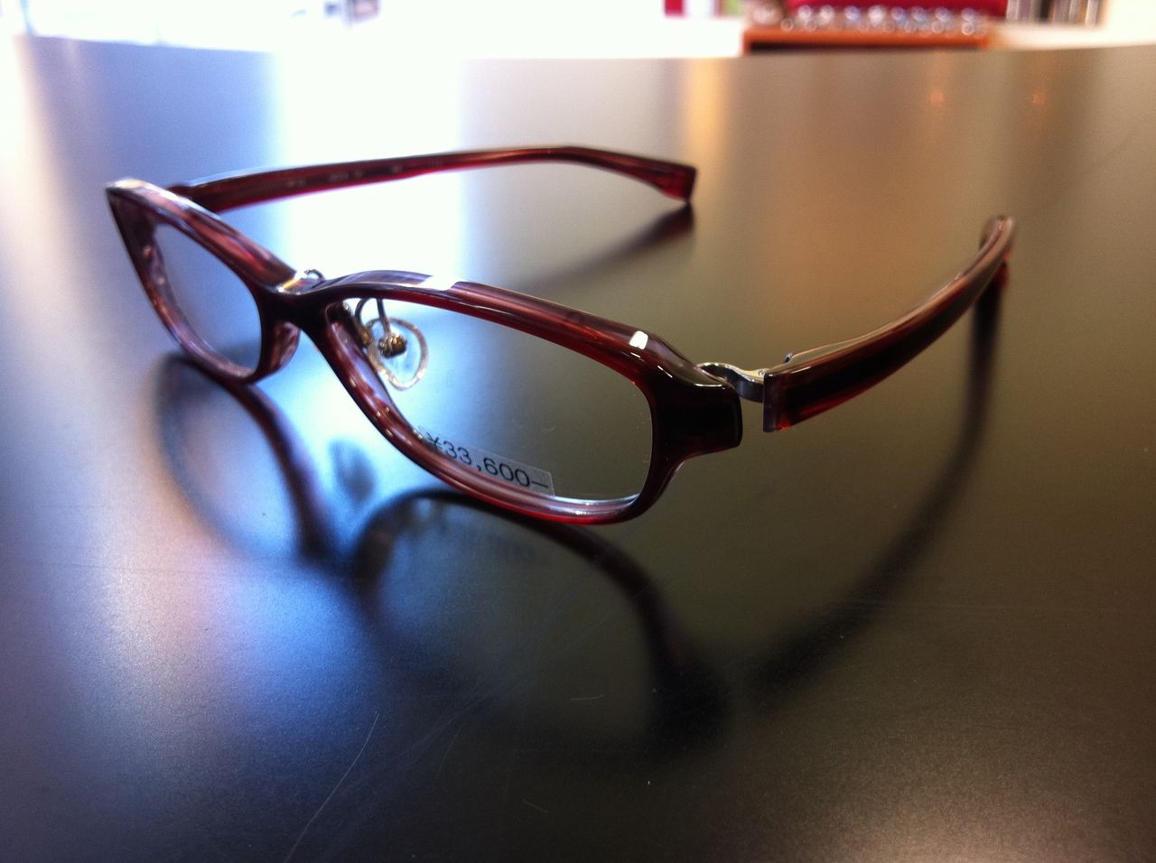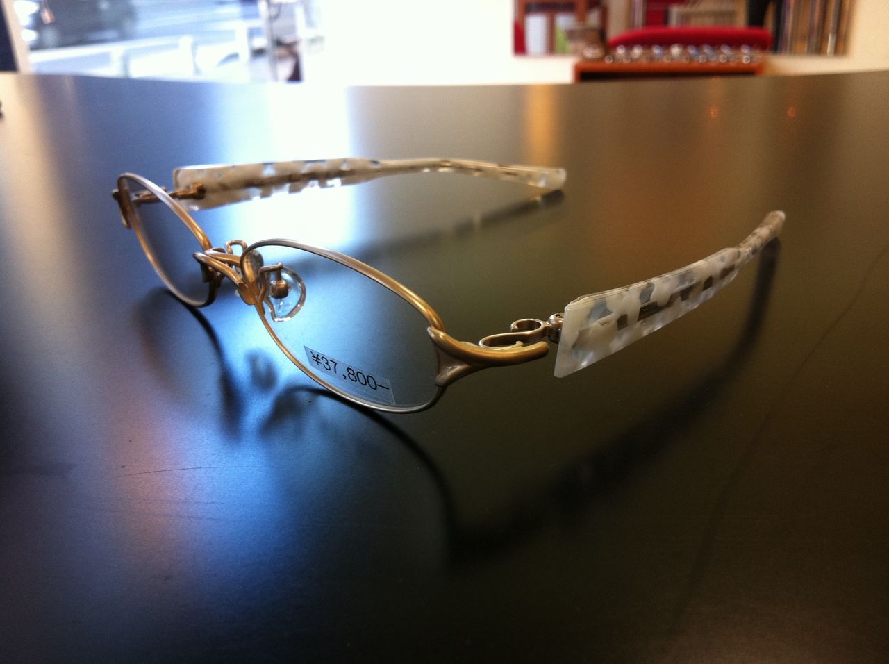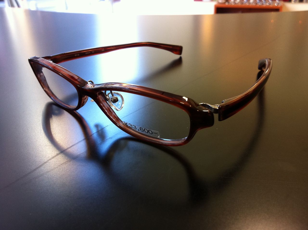 オレンジマット×ジュエルオレンジ 派手なオレンジではございません、掛けても煩くなくかつ目元を明るくしてくれます。