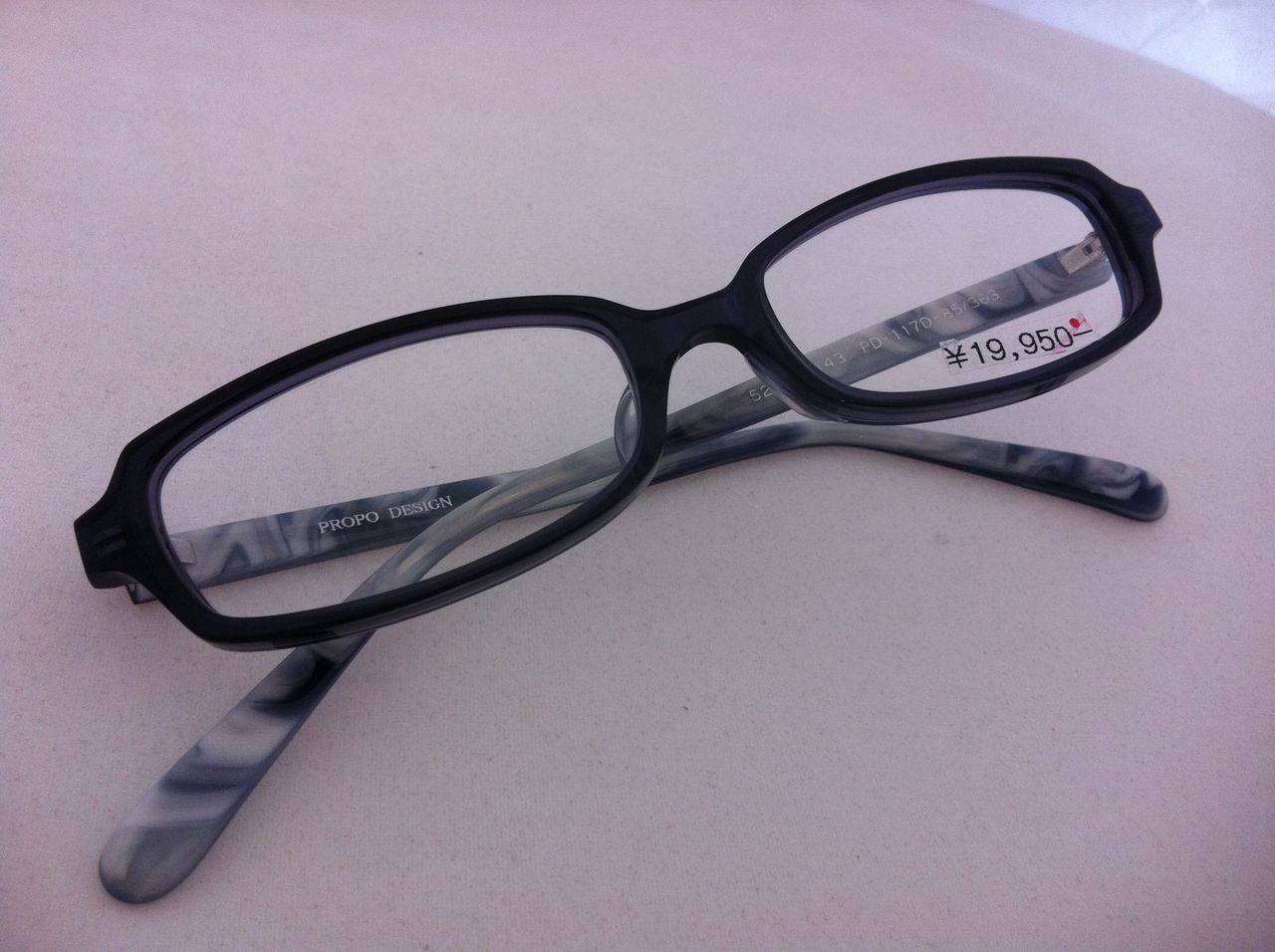 プロポデザイン PD-117のご紹介です。 プロポデザインはTPO、服装を気にせずどんな場面でもしっくりと掛けられるデザインが特徴です。 PD-117は女性用のモデルでかっちりと真面目なスクェアシェイプのプラスティックフレームになります。