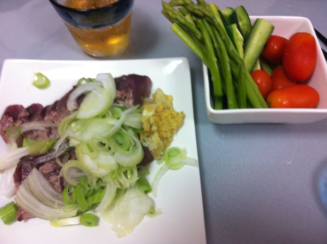 きゅうりとでっかいプチトマト、アスパラは買ってきたものは味噌マヨネーズで頂きます。 アスパラはお湯ですと栄養分が逃げてしまうのでシリコンスチーマーを使って熱を通しました。
