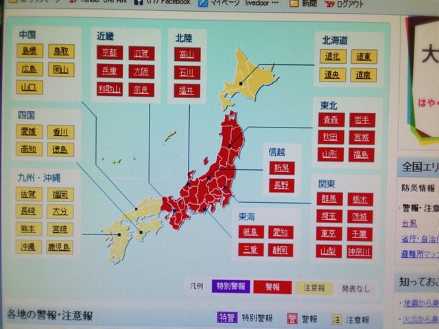 警戒・注意報を見ると東日本がほぼ警戒になってます。 午後になり風が強くなってきていよいよ来たか、でも雨降んないねーとスタッフと話していたら急に大雨!