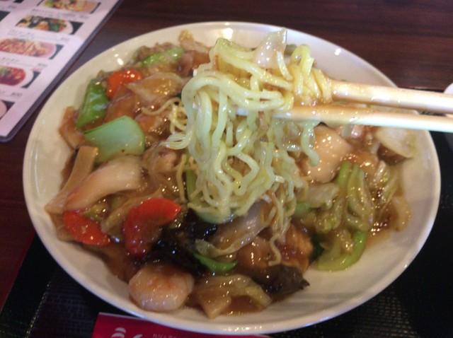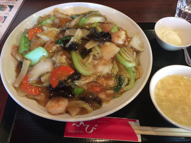 開成山公園近くの「えんび」が相当美味しいと聞きましたので、あんかけ焼きそばを頂いて参りました。 ついうっかりと「大盛りで」と。 何度失敗してもまたやるんですよね、平皿ではなく底が少し深いお皿にどっさりなあんかけ焼きそばがやってきました( ゚Д゚) 美味しいですが辛い思いをして完食です。 今度は麻婆豆腐を頂きに参りましょう。