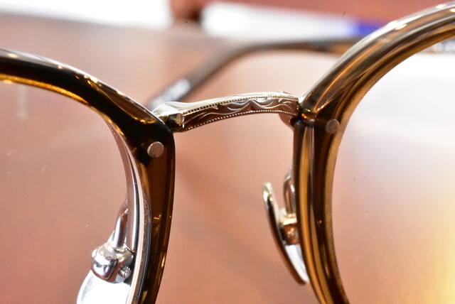 ブリッジから丁番にかけてメタルでつたっておりデザイン性と強度を兼ね揃えたコンビネーションです。