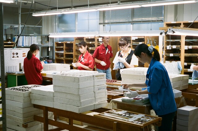 全ての作業を一貫体制で行われており機械が得意なことは機械で、人の手でなければ良いものができないところは人の手でと、新しい技術と人の手によって生産性よりクオリティを重視した眼鏡作りをしております。