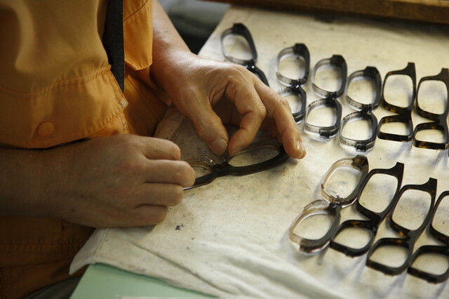 すべて手磨きで艶を出し、掛け心地が滑らかなのが特徴で、近年では海外のアイウェアブランドからの注目度も高く、製作依頼を多く受けております。