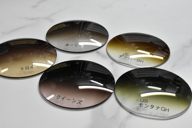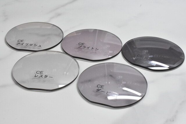レンズに染色をする場合は各レンズメーカー共通カラーの「アリアーテトレス」から選んで頂きます。 弊店では薄いカラーでこのようなものもご用意しております。