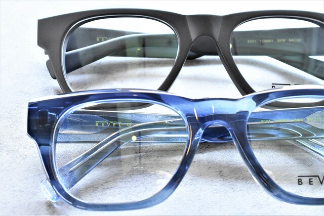 本日ご紹介いたしますのは、アメリカの眼鏡ブランドBEVEL「ベベル」です。いままでご紹介してきたBEVELのモデルとは全く変わり、肉厚でボリューム感たっぷりの「TOMMY 8001」です。風合いの違う2色が入荷しております。