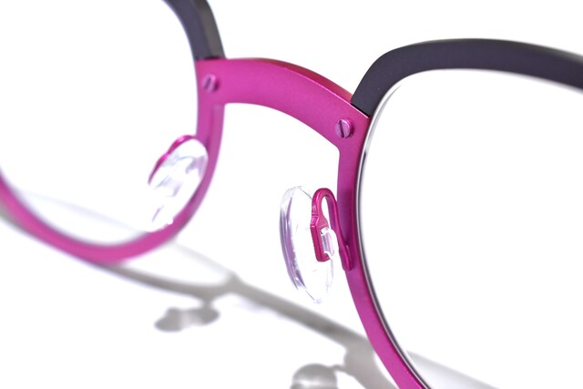 ブロウは落ち着いたパープル、ボトムハーフには光沢感のあるパープル寄りのピンクカラーになっています。ブリッジや智元部分おパーツが組み合わされている構造もデザインとして映え、作りもたのしいです。