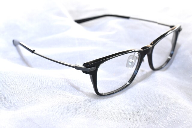 999.9-フォーナインズ「NPM-140」クリアブラック×クリアマットカラーが入荷しております。メタルとプラスチックのスマート表情を演出する王道のコンビネーションスタイルです。リムの上下に精密なカットを施し軽快な印象を作り、スクエア型のクールな印象をより高めます。