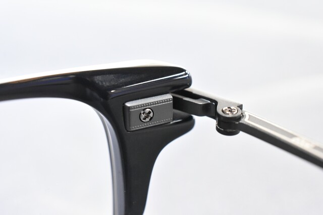 智元は構造が見えないように内部に収める”ビルトイン”と呼ばれる作りになっており、プラスチックをメタルパーツで挟み込みしっかり固定する事でフレキシブルに可動し高い機能性とデザイン性になっています。このパーツがしっかり働く事で快適なホールド感を生み安定感のある掛け心地となります。