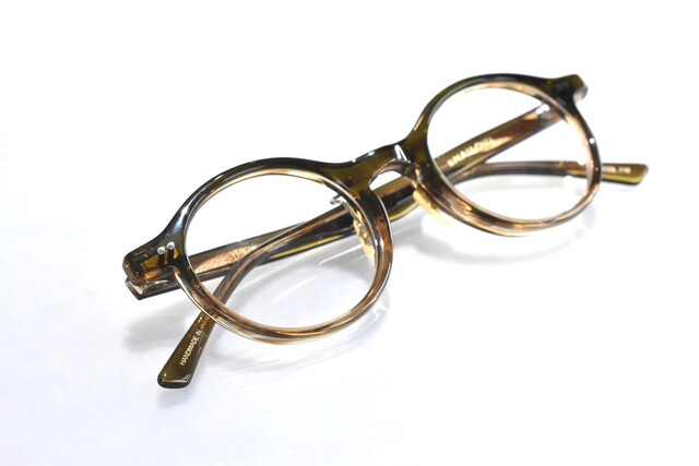 レンズの厚みもカバーできるサイズ感です。ラウンドフレームに少し変化を与えたさり気ない個性でオシャレにお掛けいただけます。是非店頭にてお試し下さいませ。