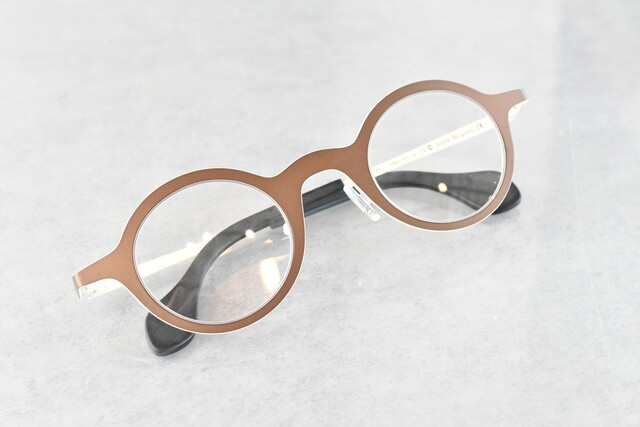 シートメタルで成型された薄い生地が個性的な表情を生み、レンズサイズも小さいのでレンズの厚みを抑える事ができます。お顔の小さな方にも綺麗にお掛けになれます。是非店頭にてお試し下さいませ。