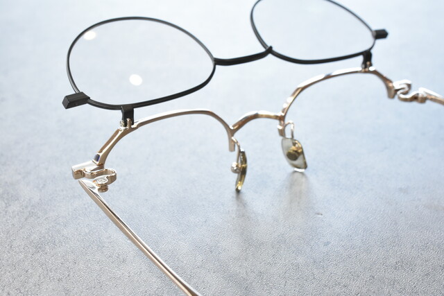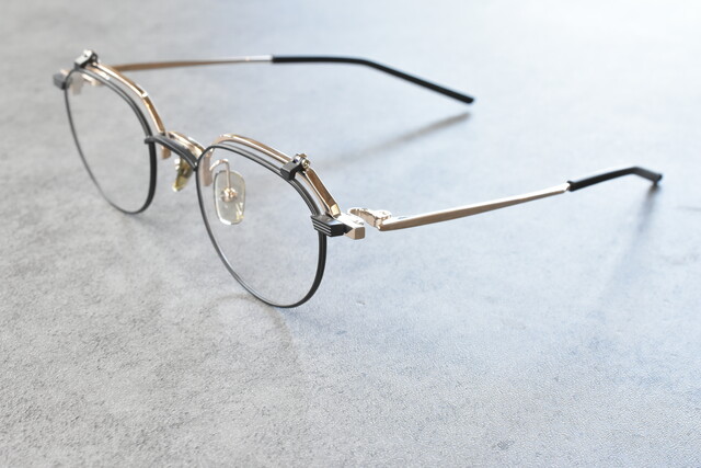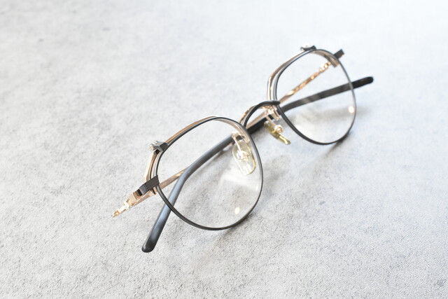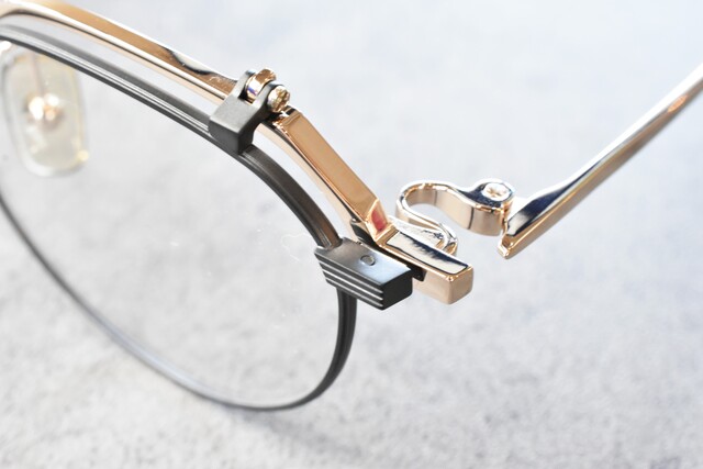 フロントはマットブラックで落ち着きのあるカラー、背面とテンプルは光沢のあるゴールドになっています。派手になり過ぎる事なく華やかな印象でお掛けいただけます。