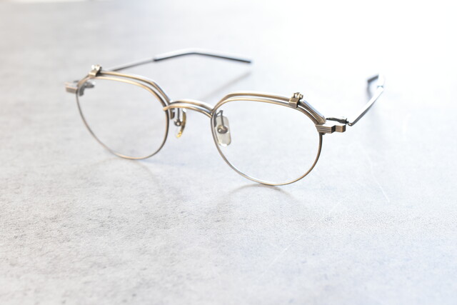 999.9-フォーナインズ-の跳ね上げスタイルはデザイン機能性が共に高く以前より大変人気があります。どのモデルもフロントはセルタイプでしたが今回は初のオールメタルになります。メタルだから出せる繊細なラインと光沢感で上品にお掛けいただけます。