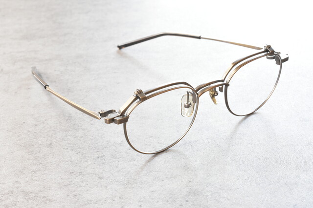 999.9初のメタルの跳ね上げ式になっており、ブラックマットとゴールドの光沢の2色使い、アンティークゴールドと高級感漂うフレームになっています。